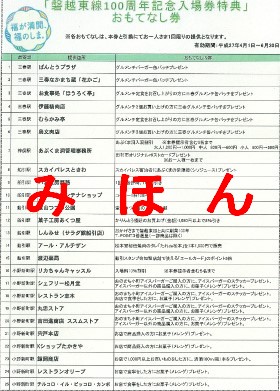 また記念入場券購入者には、ふくしまDC期間中(6月30日まで)沿線の店や観光施設で
