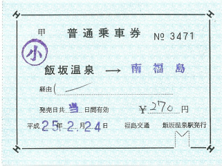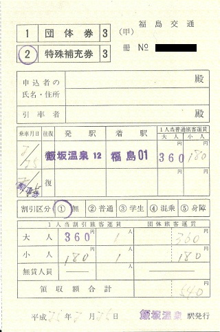 特別に飯坂温泉~福島の大人1人小人1人で発券して頂けました。